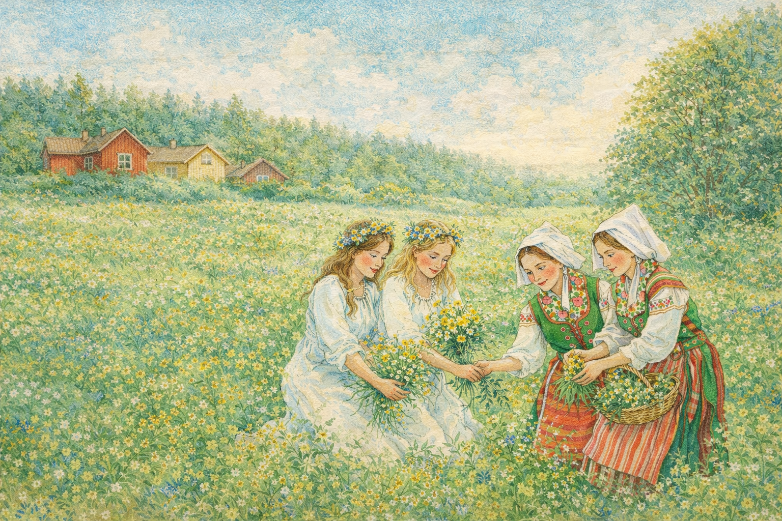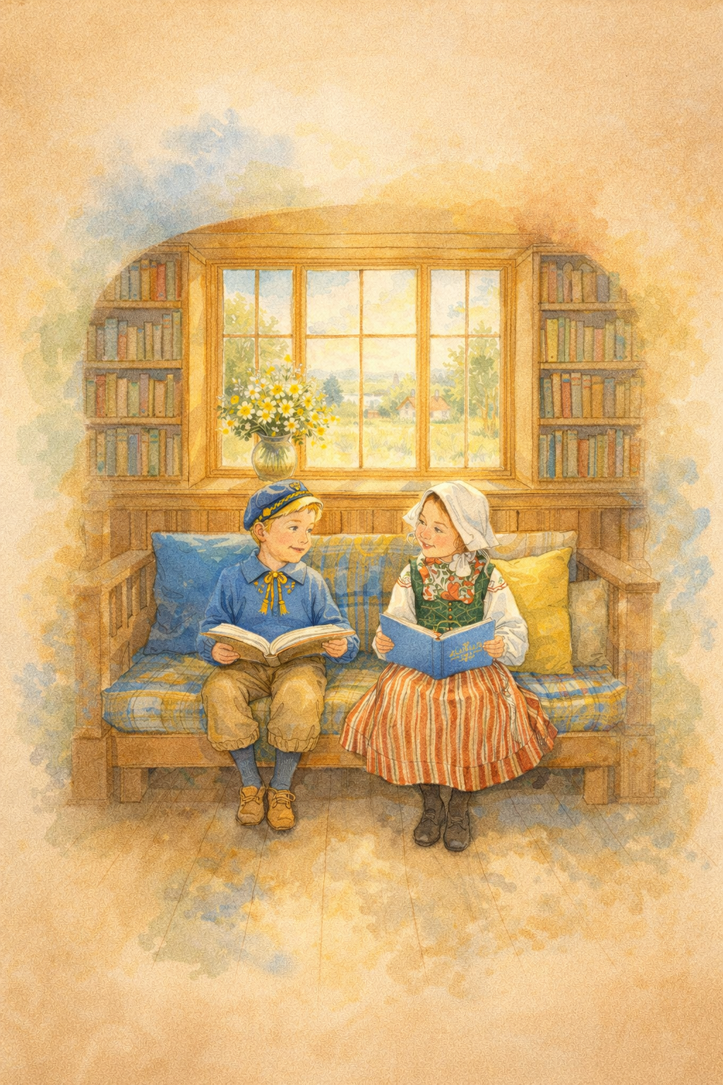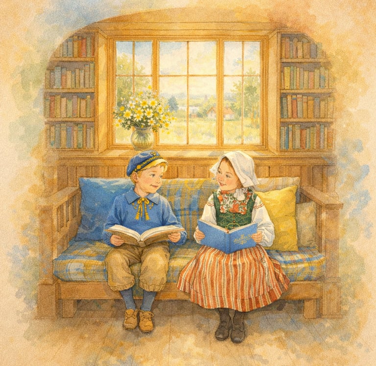 The illustrations you see, are created with the help of artificial intelligence inspired by the genius, style and themes of Swedish painter Carl Larsson.